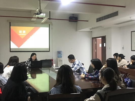 4月25日中午,史量才新闻与传播学院举行2018学风建设年系列活动之出国(境)项目分享与政策宣讲会在25号楼1519会议室举行。学院党总支副书记方平、校国际交流与合作处交流科科长郭斐,辅导员侯霞、赵威老师,学院40余位班级代表和具有国境交流学习意愿的学生本次交流宣讲会。