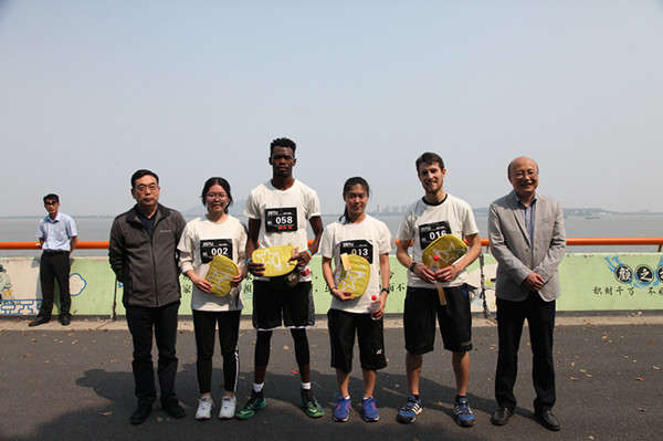 近日,由国际交流与合作处主办、国际教育学院和体育教研部协办的中外大学生阳光长跑活动在下沙钱塘江边开跑。我校来至20个国家和地区的近100名外国留学生、港澳台以及大陆的长跑爱好者参加了本次活动。副校长郜正荣、国际交流与合作处处长傅翔莅临现场,为运动员们助跑。