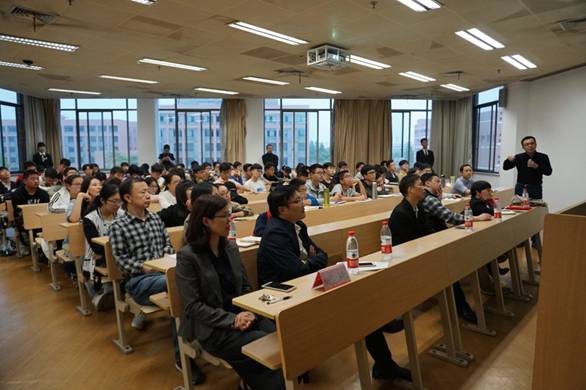 张建光的报告赢得了全场同学的热烈掌声。在最后的互动环节中,同学们踊跃提问,就行业前沿、职业选择、专业学习、企业用人考量等方面的问题与其做了深入交流。活动持续两个多小时,同学们意犹未尽,纷纷表示后期会向校友导师多多学习。