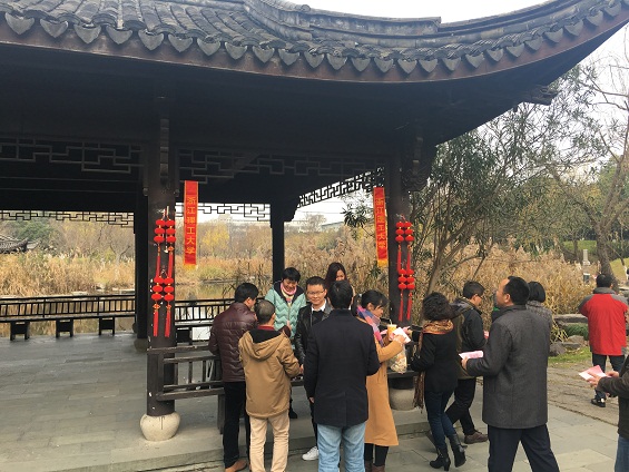 此次活动在校园和西公园两个地方分布了8个服务点,每个服务点可以盖一个字,分别为“我、爱、理、工、新、年、快、乐”,集齐“我爱理工”或“新年快乐”一句话或两句话就可以领取奖品。在线路的设计上,老师们可以观赏到校庆后的标志性建筑,如丝绸博物馆、校训石、世纪弦歌等,感叹学校事业的蒸蒸日上;西公园,冬日风景别样精彩,一队队人群穿梭其中,为冬日增添了一抹亮色。