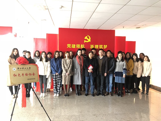 为深入学习贯彻党的十九大精神,宣传和研究习近平新时代中国特色社会主义思想,传承和弘扬红船精神,12月21日中午,国际教育学院在校党员之家举行了红色手绘协会揭牌仪式。中国红色文化研究会常务理事、马克思主义学院院长渠长根,校团委书记吕媛媛出席会议。国际教育学院团委书记卢跃华、全体辅导员、学生党员和学生骨干参加了此次会议,会议由国际教育学院党总支副书记吴跃峰主持。