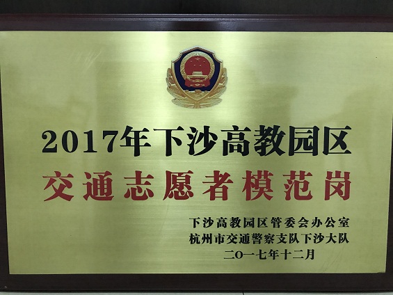 12月2日,由下沙高教园区管委会办公室、杭州市交通警察支队下沙大队联合主办的2017年下沙高教园区“122”全国交通安全日主题活动在杭州电子科技大学举行。活动对2017年度高教园区交通志愿服务工作进行了表彰。我校和杭州电子科技大学荣获2017年度高教园区交通志愿者模范岗称号。