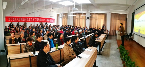 为推进“两学一做”学习教育常态化制度化,深入学习贯彻党的十九大精神,11月13日,离退休党总支组织106名党员到上虞校区开展“不忘初心,牢记使命”主题党员活动。离退休党总支邀请马克思主义学院退休教师韩振亮教授作辅导报告。科技与艺术学院相关领导到会欢迎。会议由离退休工作处处长兼离退休党总支书记孙芝凤主持。